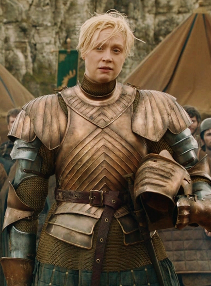 Brienne, la Doncella de Tarth, la virgen guerrera famosa por su lealtad y fealdad.