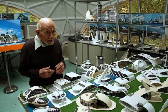 Jacque Fresco, ante maquetas para el Proyecto Venus.