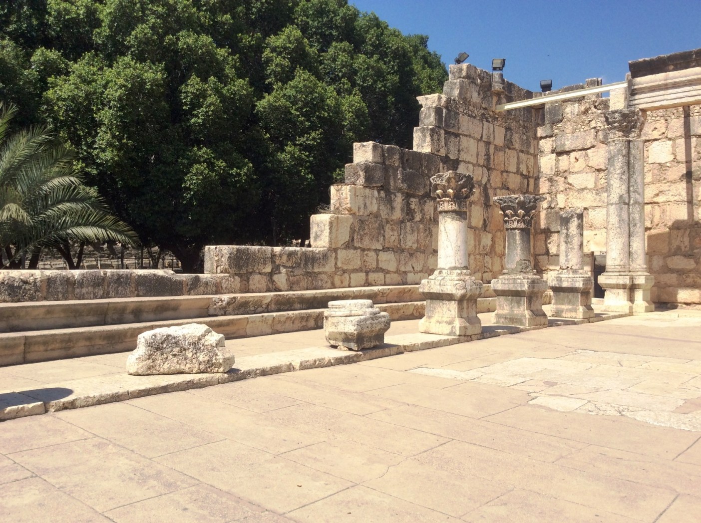 Bajo el sol de Galilea, las piedras de la sinagoga son tan blancas que pueden deslumbrar. (© Foto de la autora)