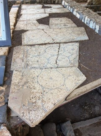 Aún pueden admirarse los hermosos mosaicos bizantinos que cubrían el piso de la basílica bizantina construida sobre la casa de Pedro. (© Foto de la autora)