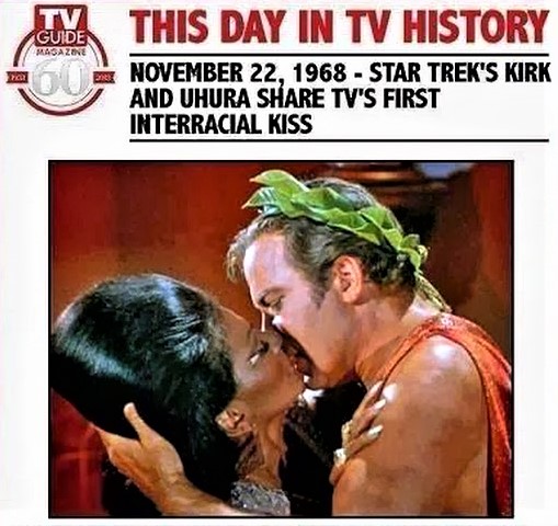 El primer beso interracial en la TV norteamericana en Star Trek, en 1968. Fue uno de los episodios donde la franquicia mostró su intención de desafiar los prejuicios y promulgar la igualdad.